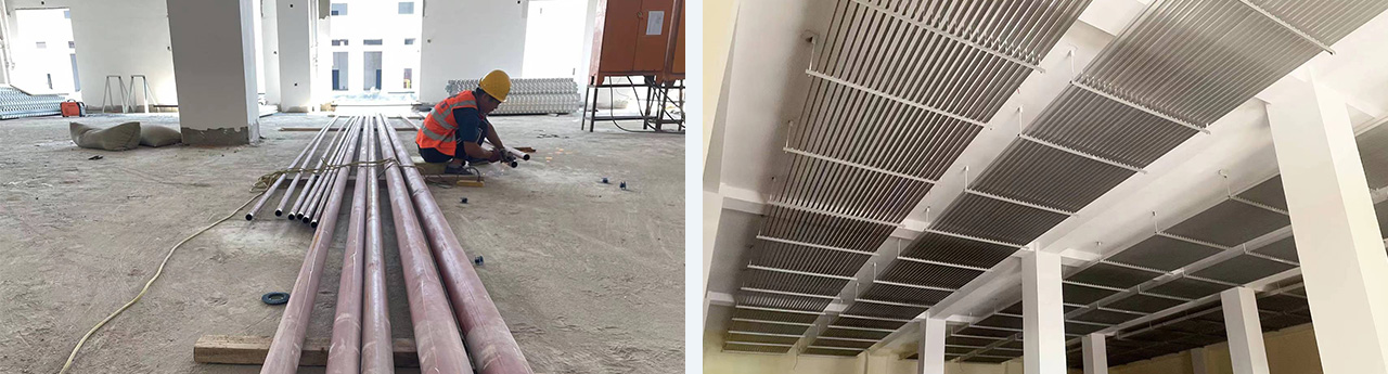 1#2#3#4#四座三層土建冷庫??側莘e423176m3(約43萬),總存儲噸位約73039噸(七萬三千噸)冷凍庫采用氟利昂(R507)桶泵供液制冷系統:穿堂采用氟利昂(R507)直接膨脹供液系統。末端采用冷風機,冷藏間采用熱氣融霜;冷凍間采用手指令自動熱氣融霜十人工掃霜。穿堂采用自然融霜。